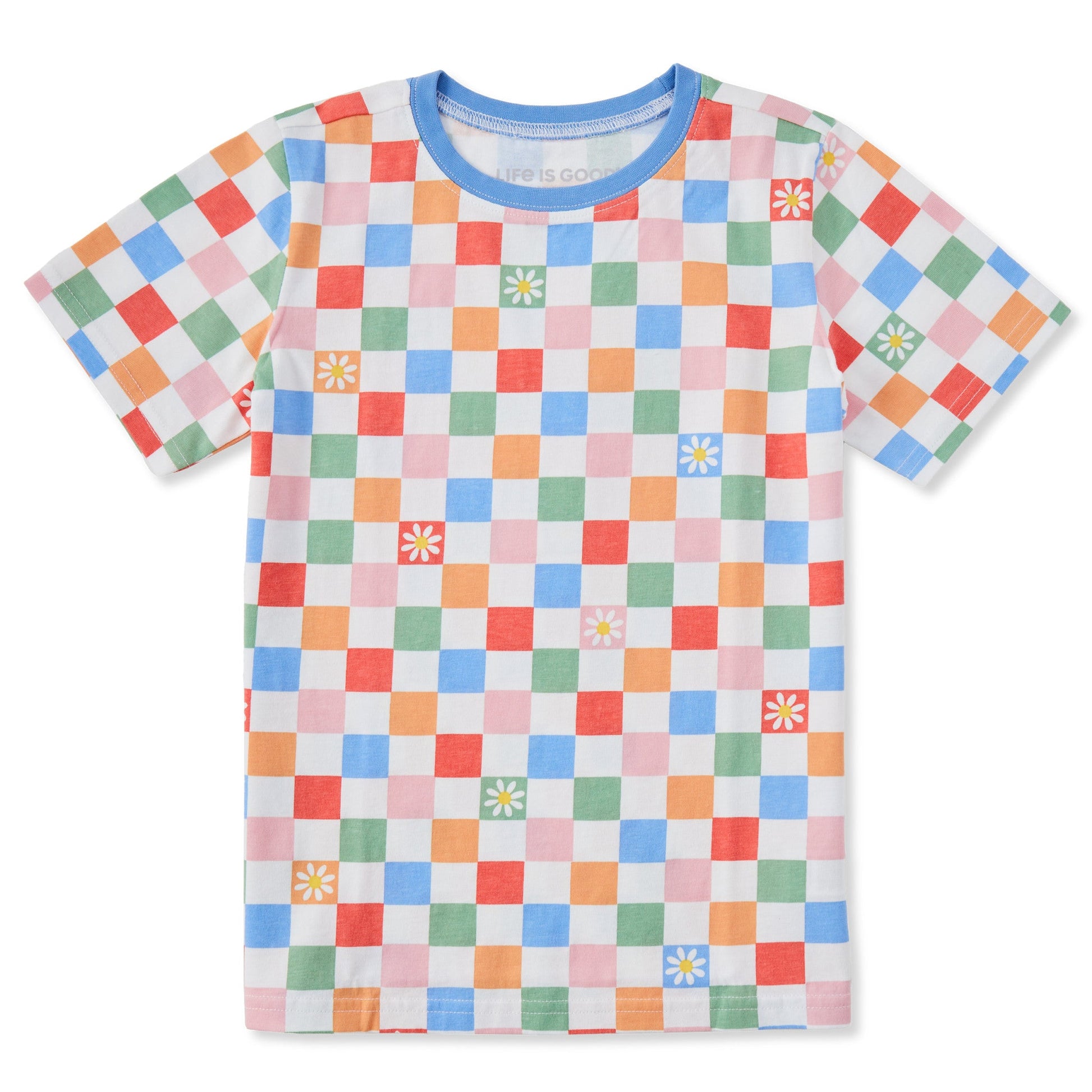 Toddler Daisy Checkerboard Pattern Short Sleeve Crusher Tee