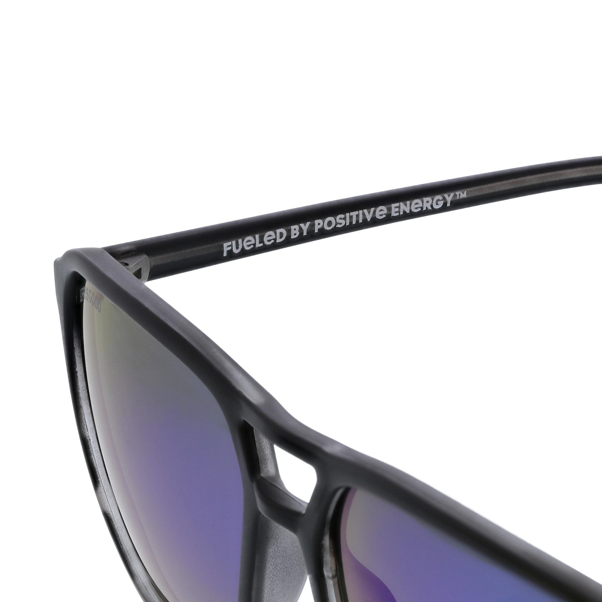 These unisex sunglasses make it easy to keep on the sunny side. while keeping it out of your eyes. With a classic shape and Polarized mirrored lenses. these frames come with a microfiber drawstring bag that doubles as a cleaning cloth. and a positive message - because it's what's on the inside that counts.