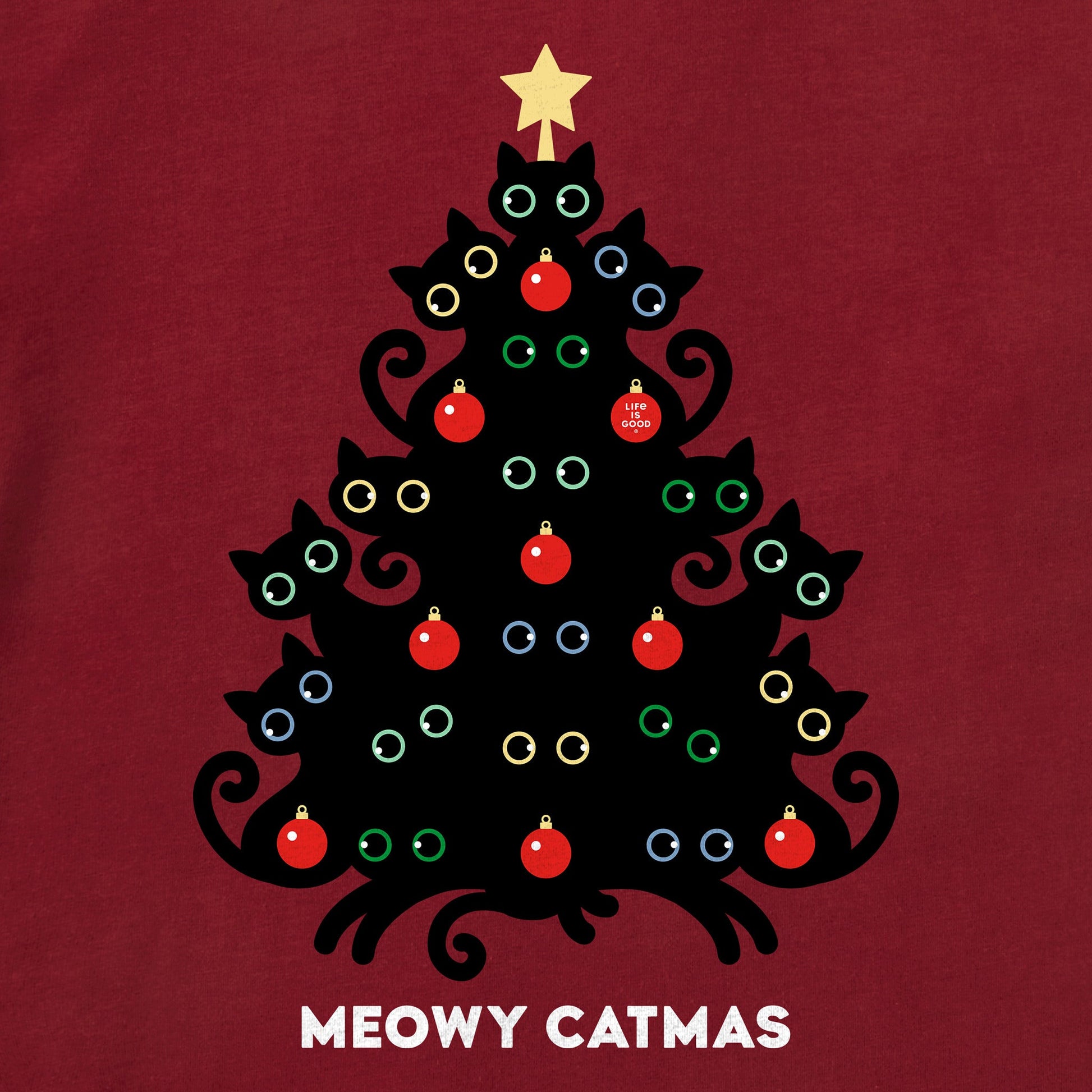 Kids Meowy Catmas Cat Christmas Tree Long Sleeve Crusher Tee