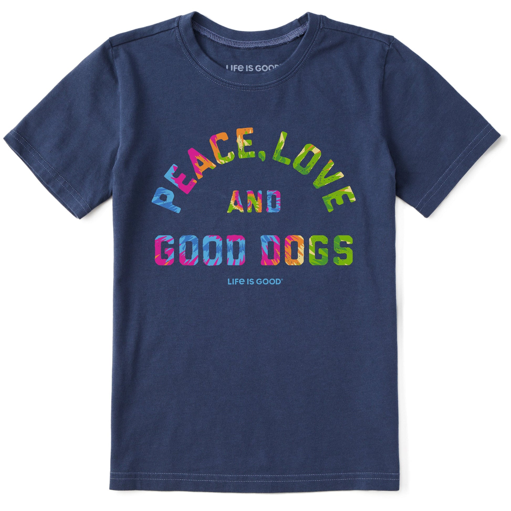 Kids Peace Love and Good Dogs Tie Dye Short Sleeve Crusher Tee