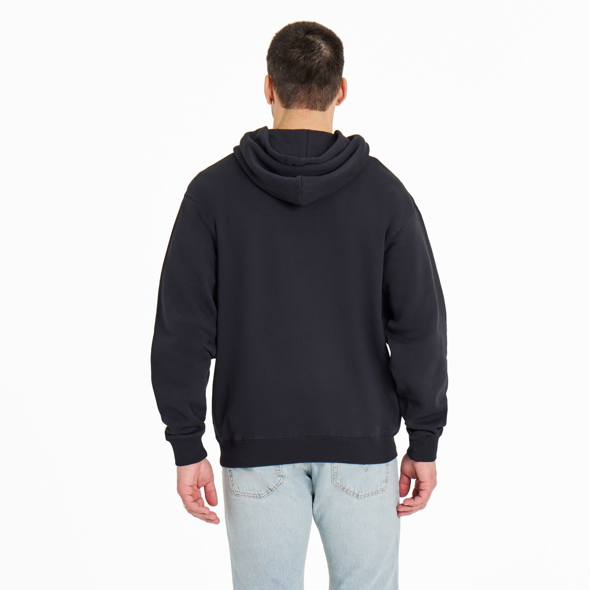 This wardrobe staple is designed to transition seamlessly through shifting temps. Modern silhouette. Versatile blend of cotton and poly fleece. Supreme loft and superior coziness.