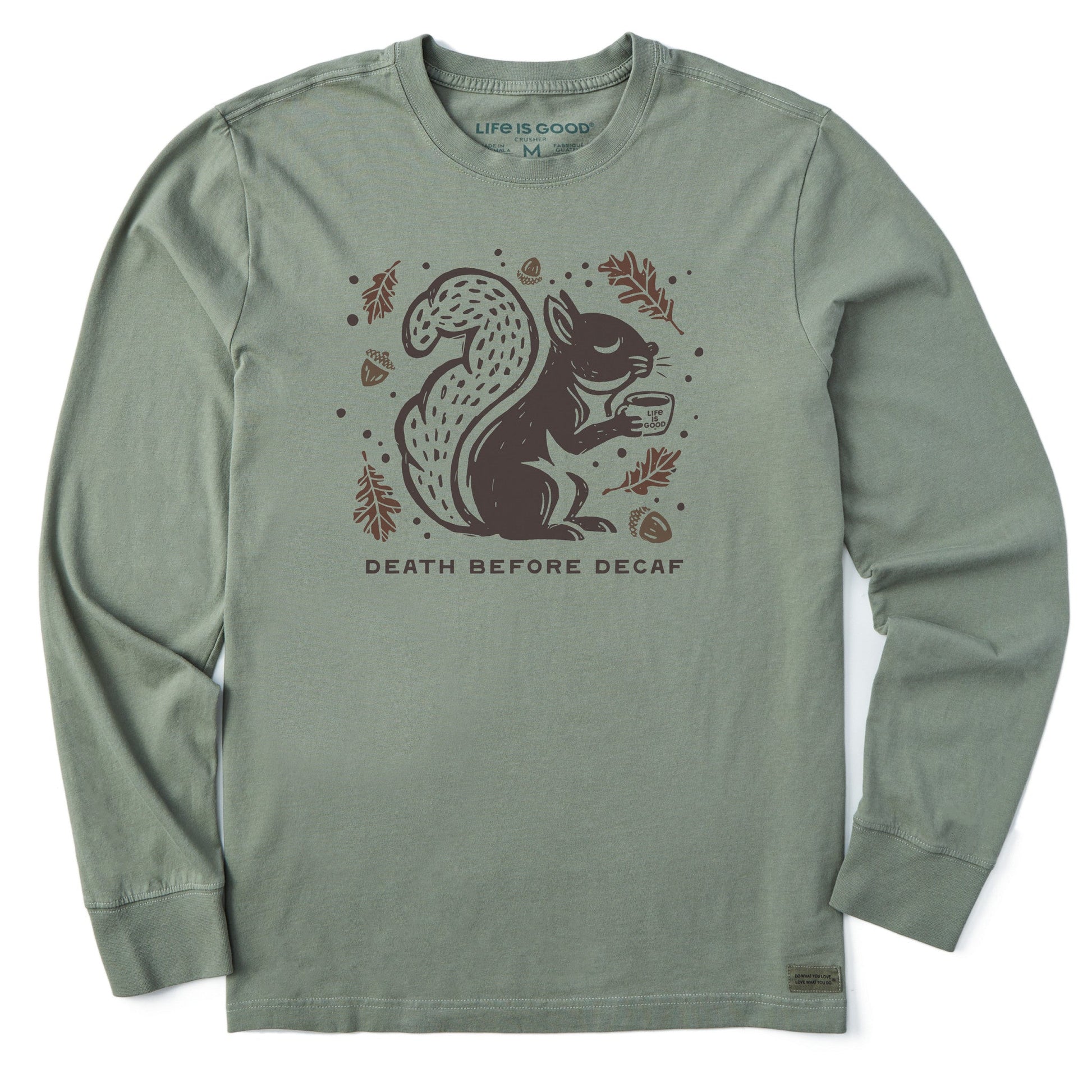 Men's Death Before Decaf Squirrel Long Sleeve Crusher Tee