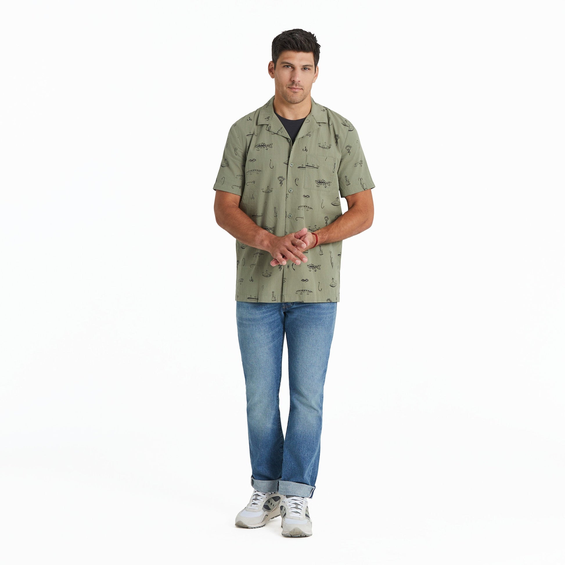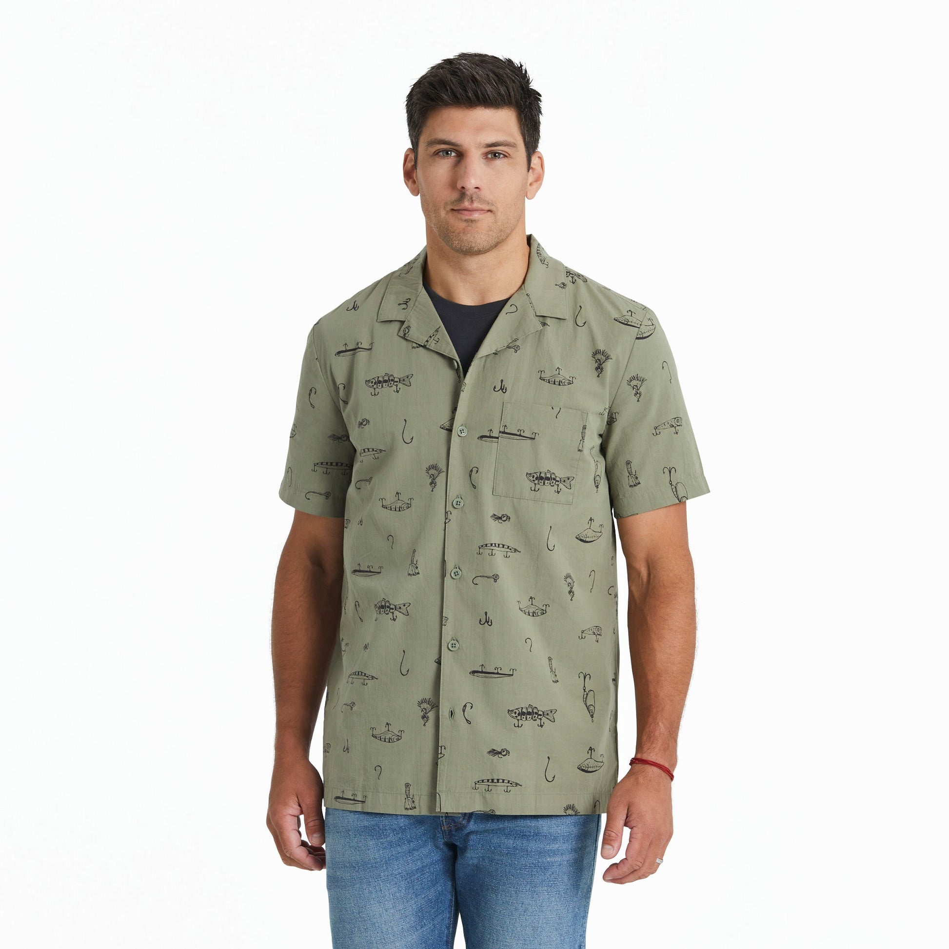 Men's Fish Tackle Box Pattern Camp Shirt