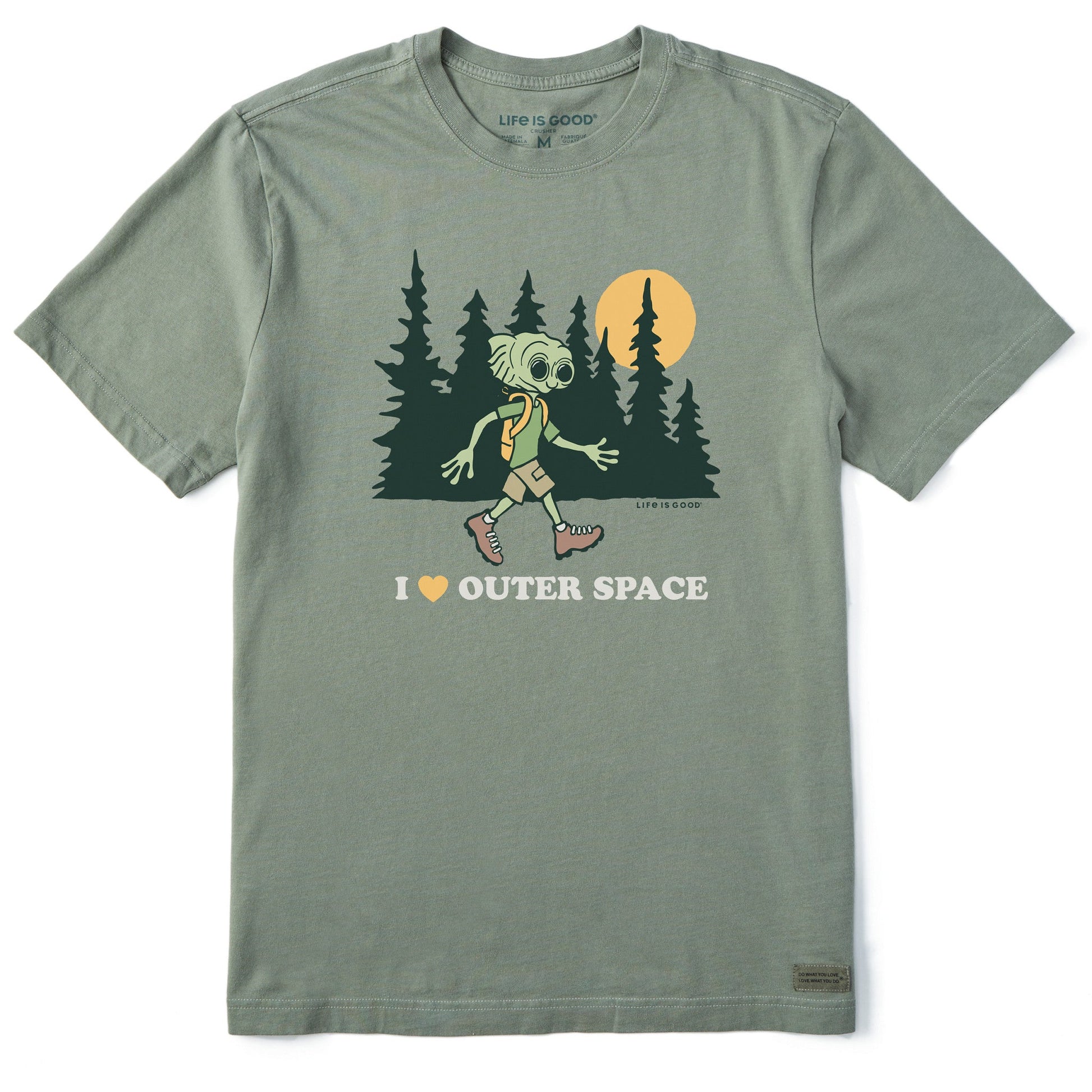 Men's I Love Outer Space Hiking Alien Short Sleeve Crusher Tee