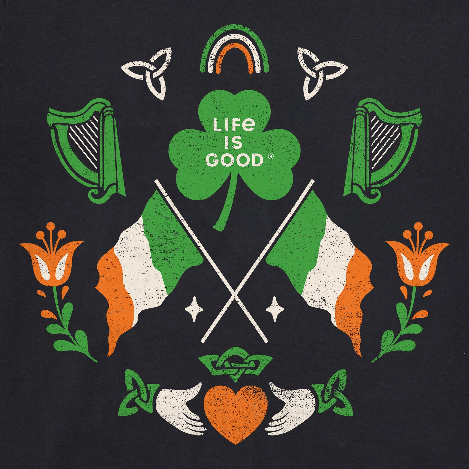 Men's Mirror Clover Irish Flags Short Sleeve Crusher Tee