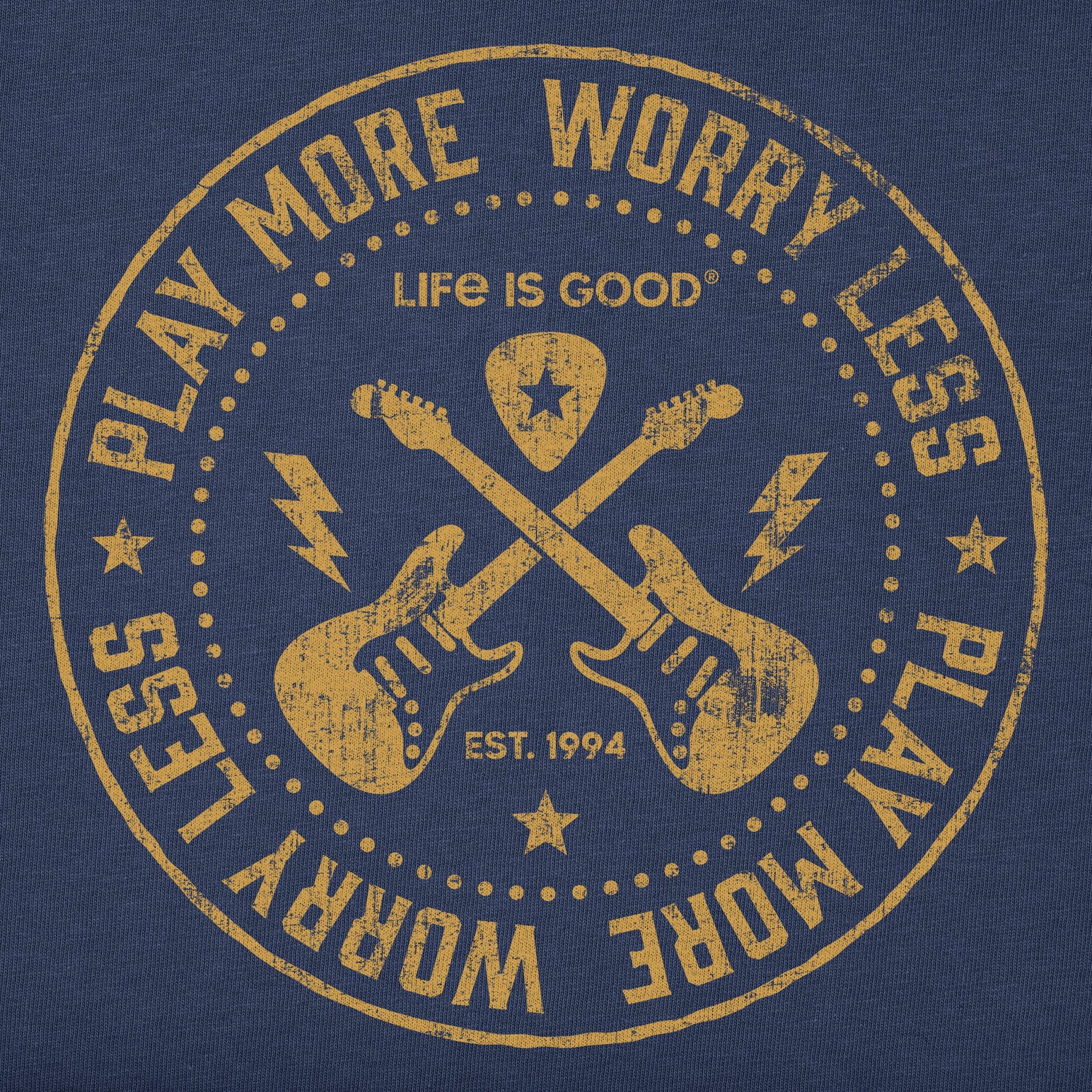 Men's Play More Worry Less Guitars Long Sleeve Crusher Tee