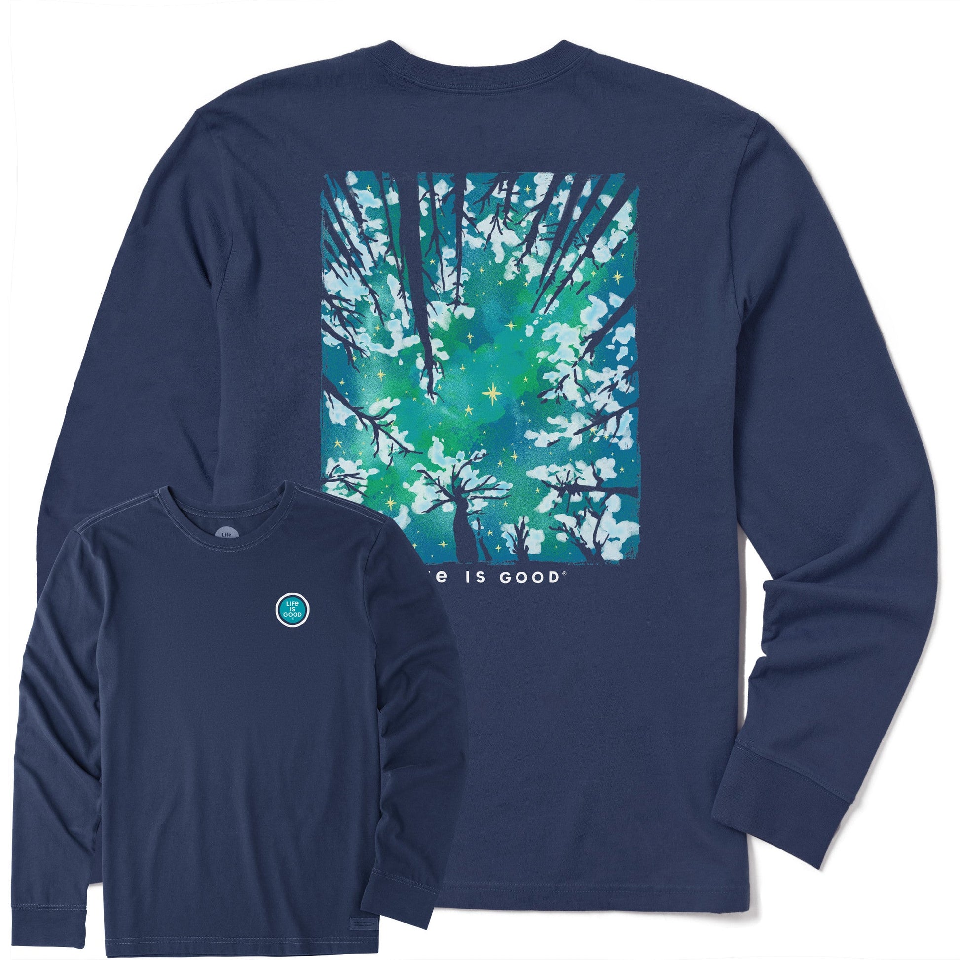 Men's Snowy Trees From Below Long Sleeve Crusher Tee