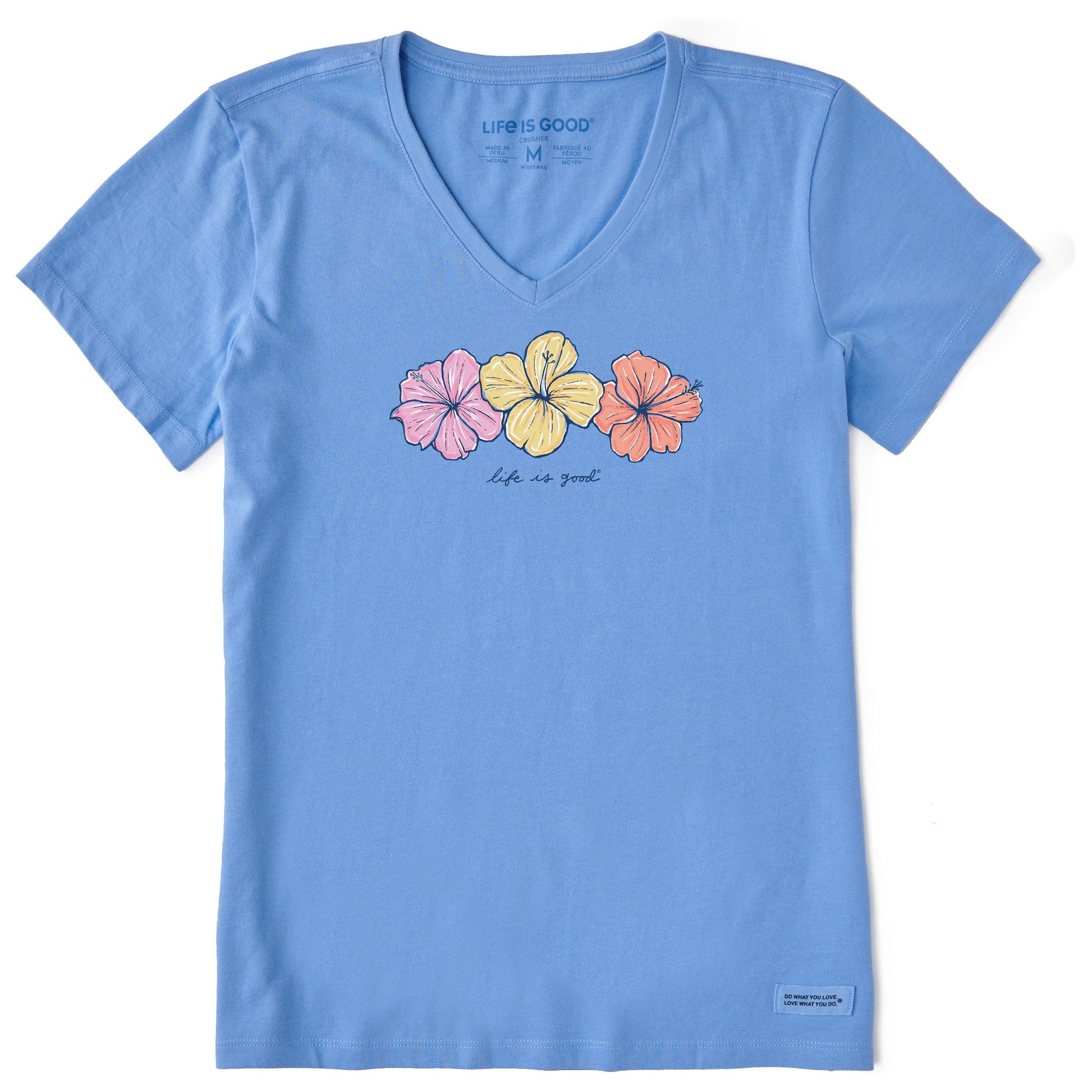 Women's 3 Hibiscuses Short Sleeve Crusher Vee