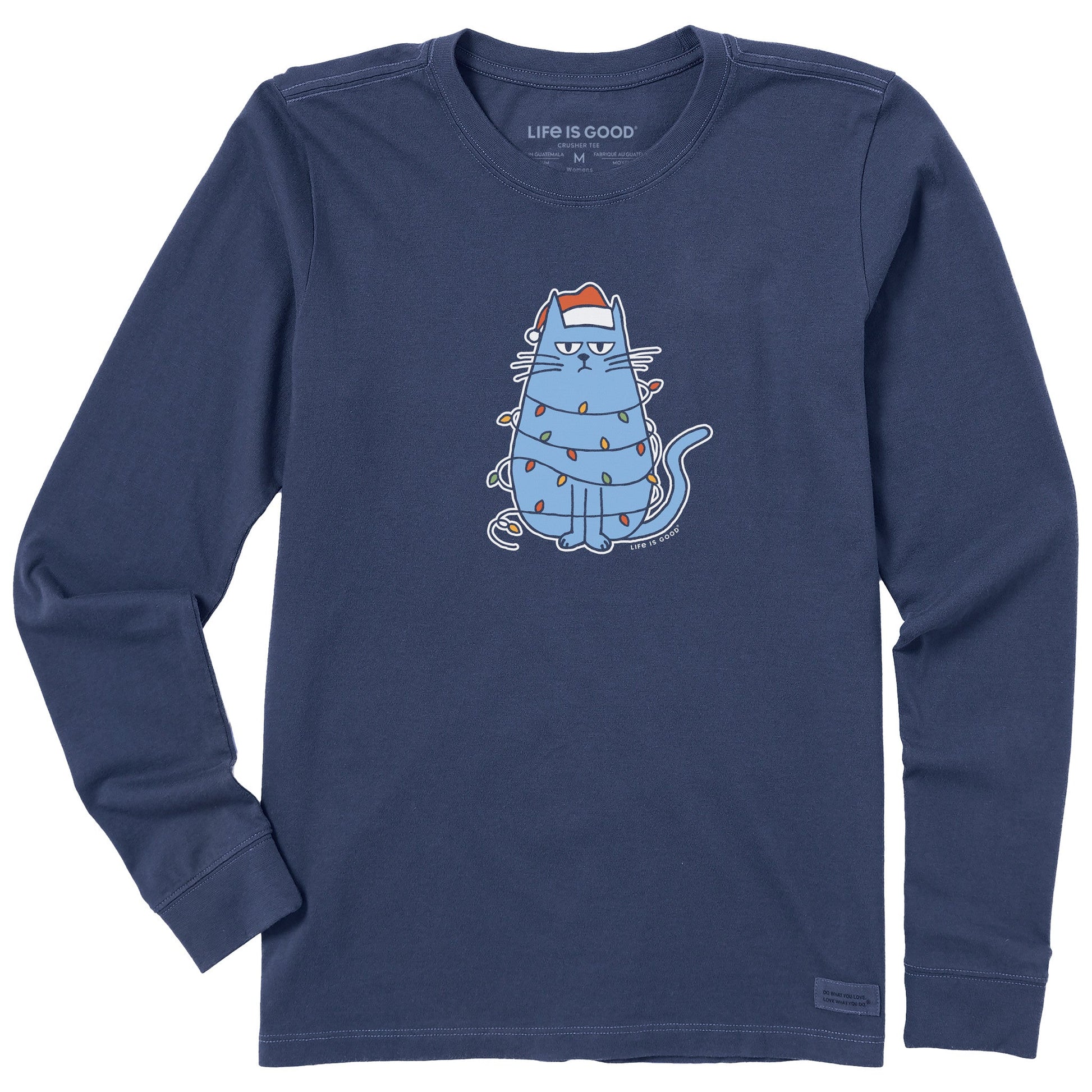 Women's Bored Christmas Cat Long Sleeve Crusher Tee