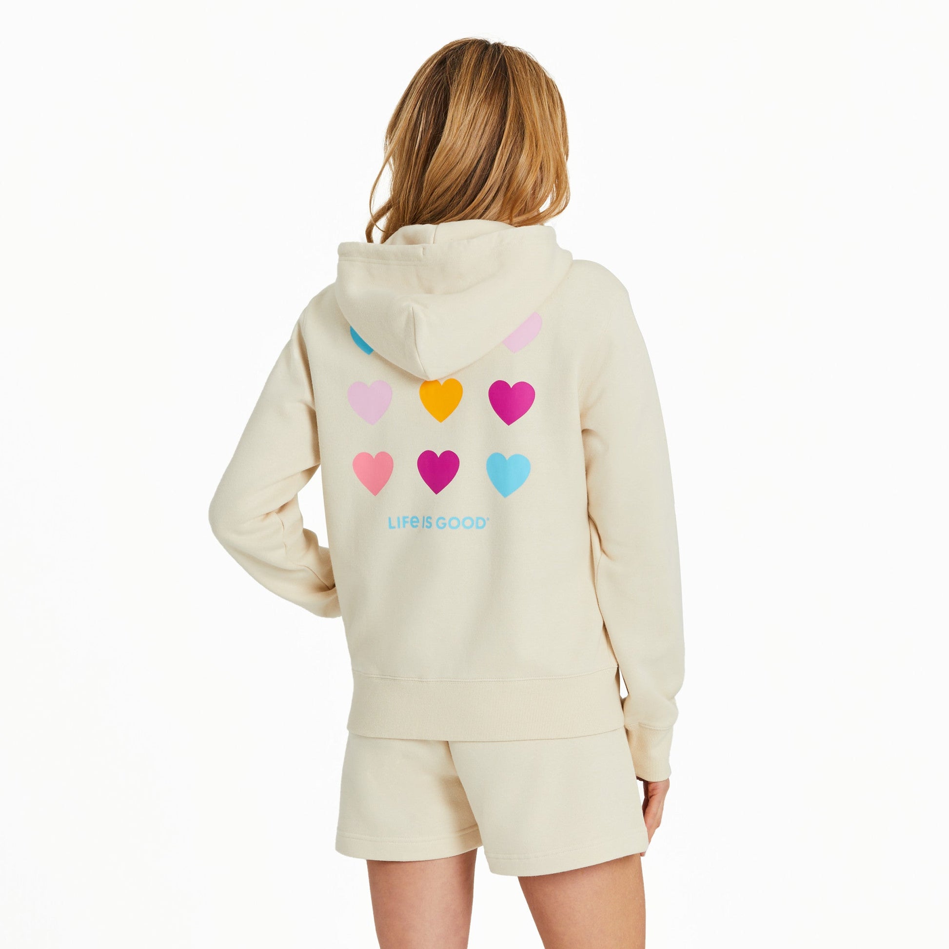 You may notice this hoodie is a little larger than usual—it will shrink to the standard Life is Good fit you know and love after washing!