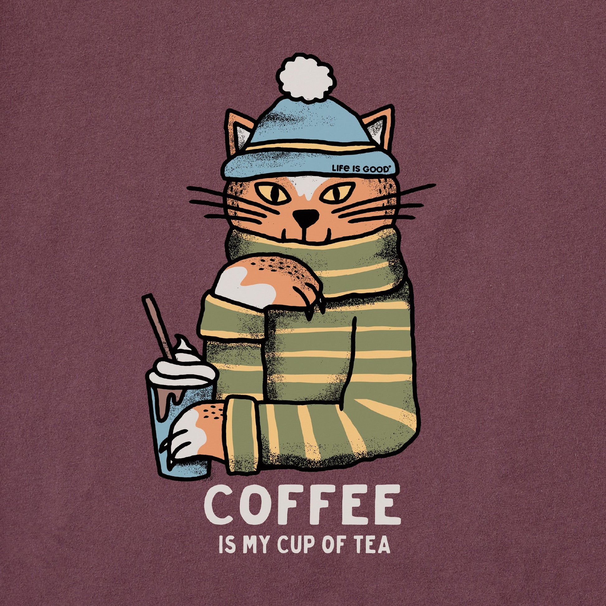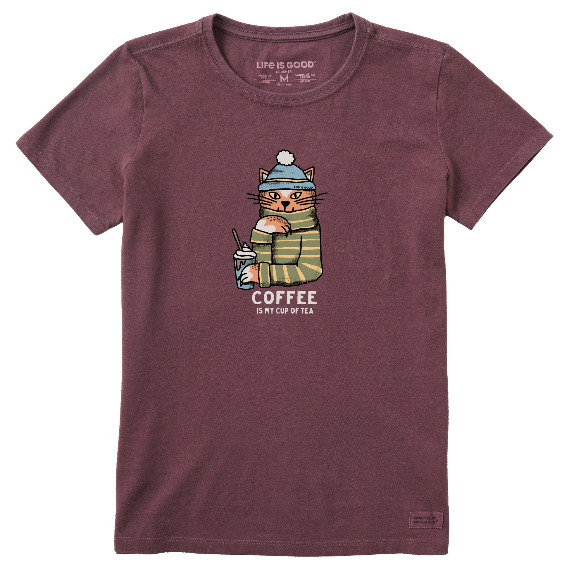 Women's Coffee Tea Cat Short Sleeve Crusher Tee