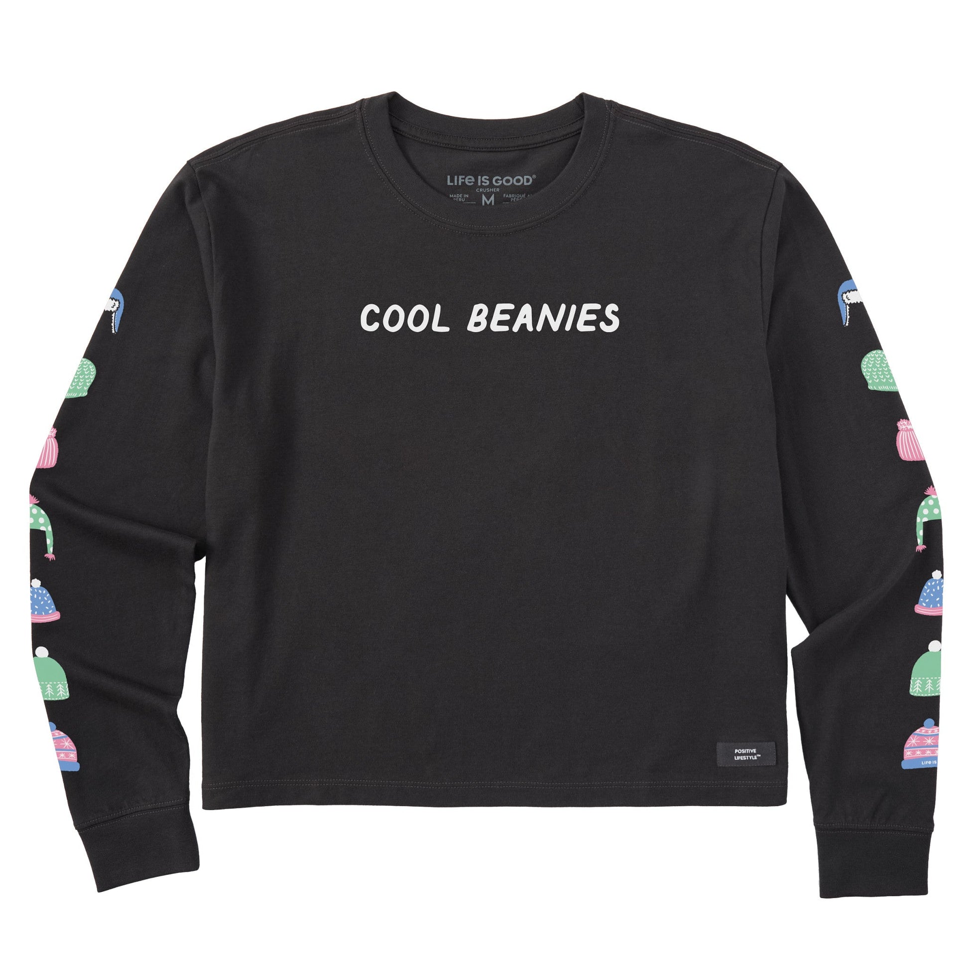 Women's Cool Beanie Hats Long Sleeve Crusher Boxy Tee