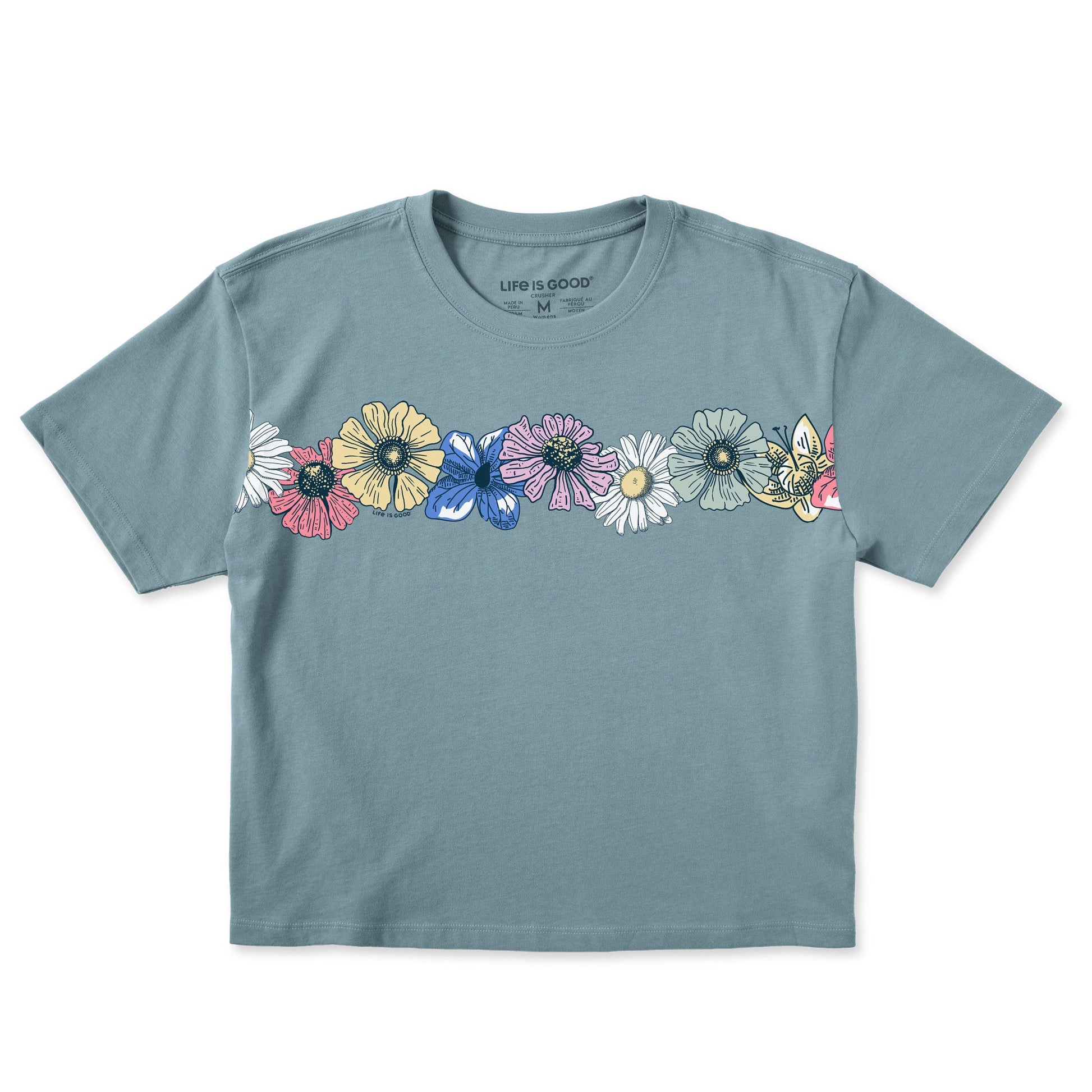Women's Detailed Row of Wildflowers Short Sleeve Crusher Boxy Tee