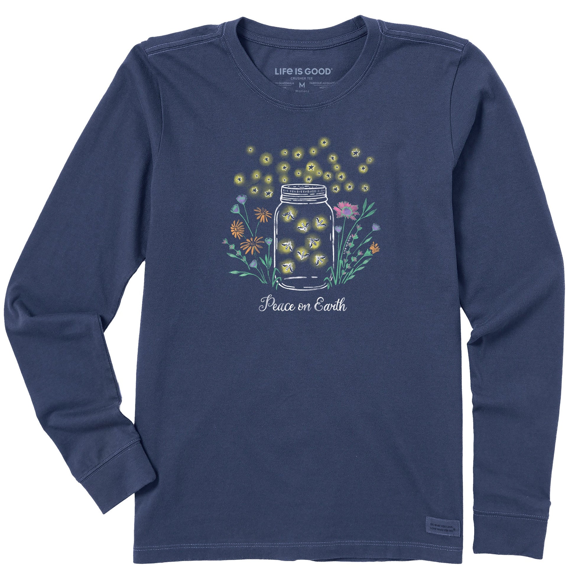 Women's Firefly Flowers Jar Peace on Earth Long Sleeve Crusher Tee