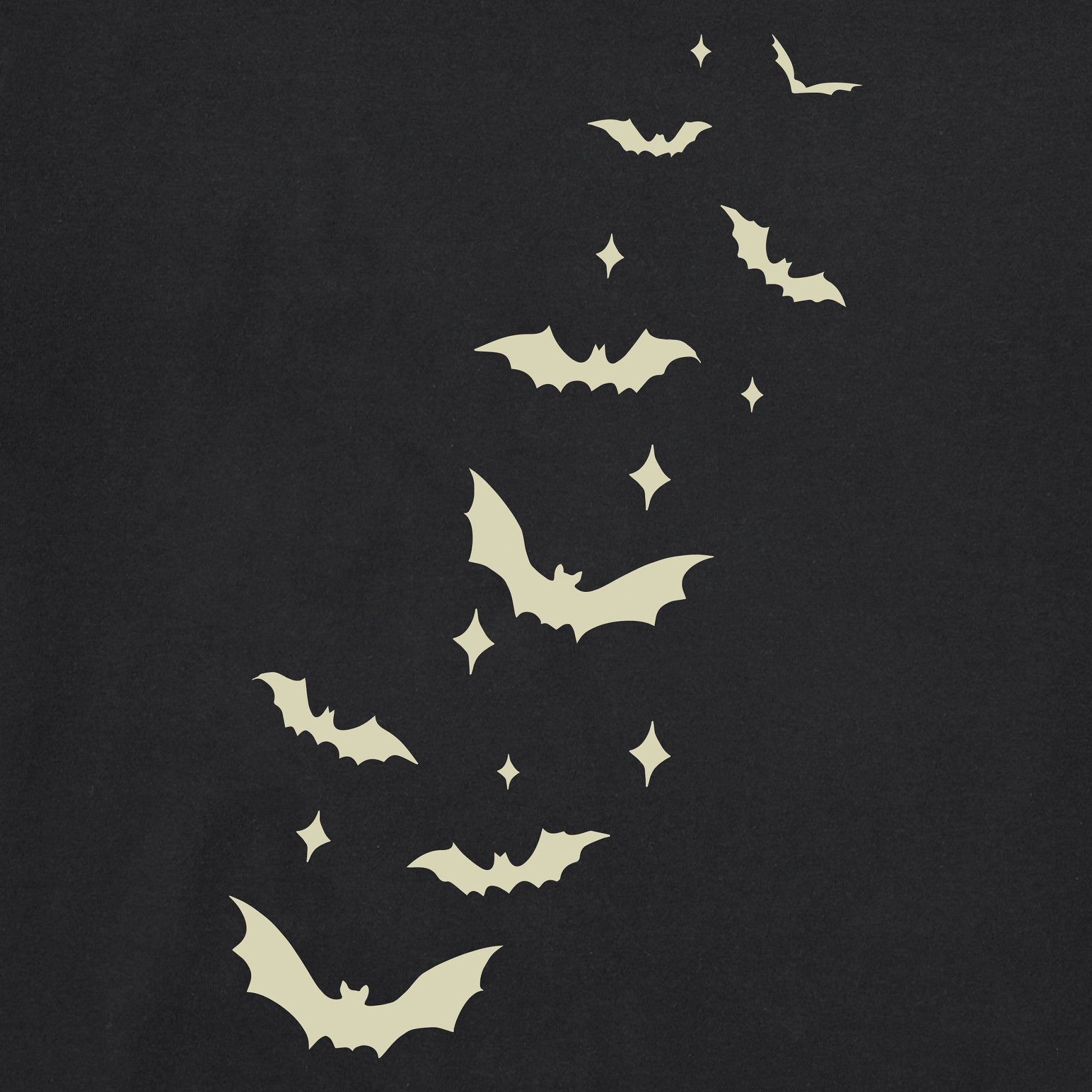 - Printed graphic glows in the dark.