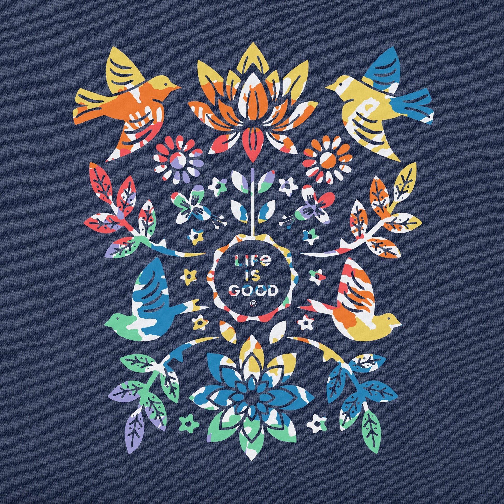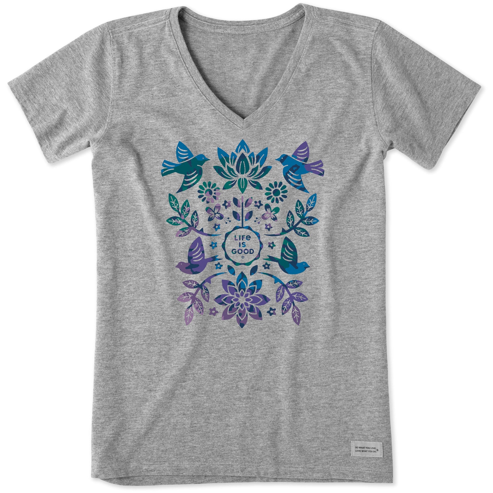 Women's Folk Art Garden Tie Dye Short Sleeve Vee