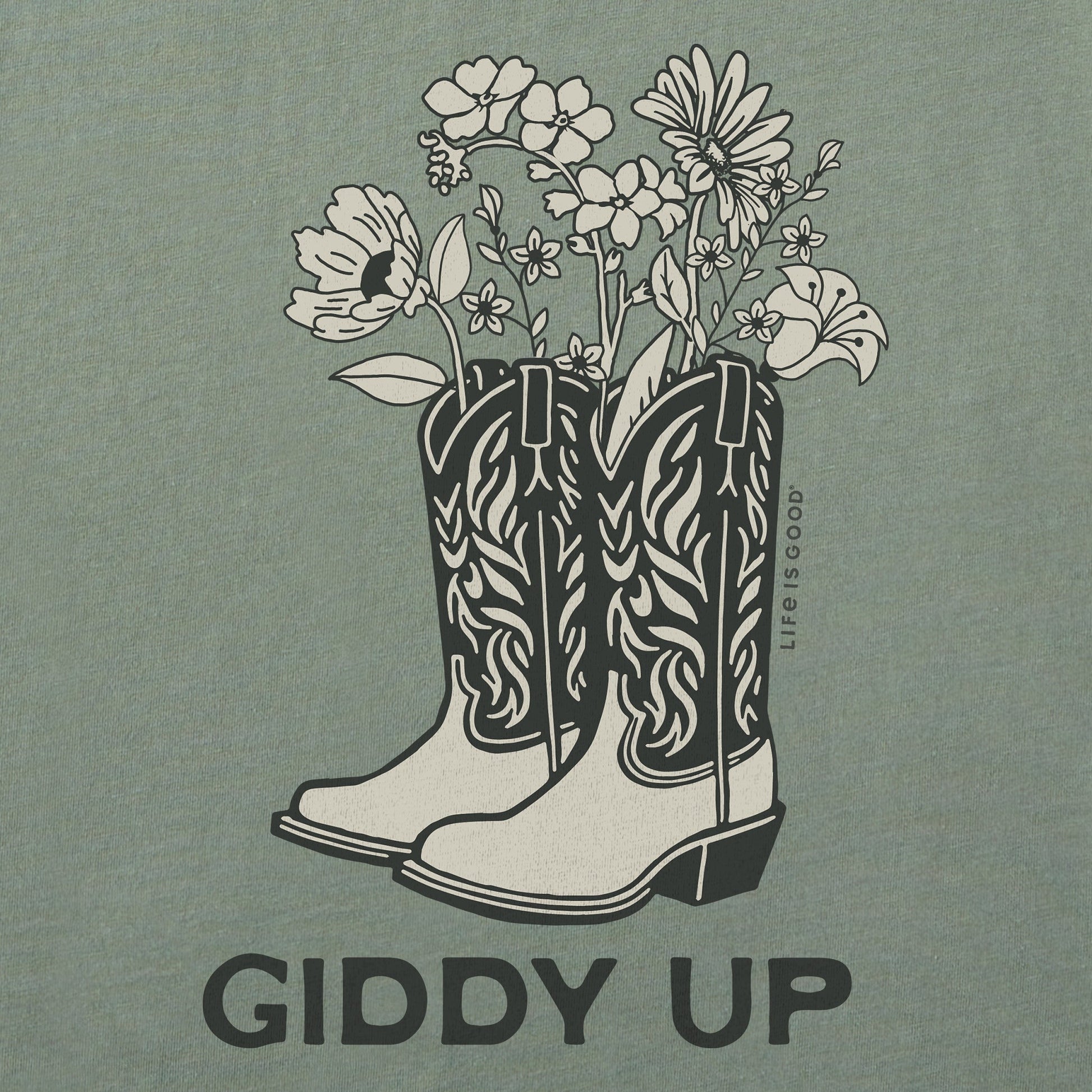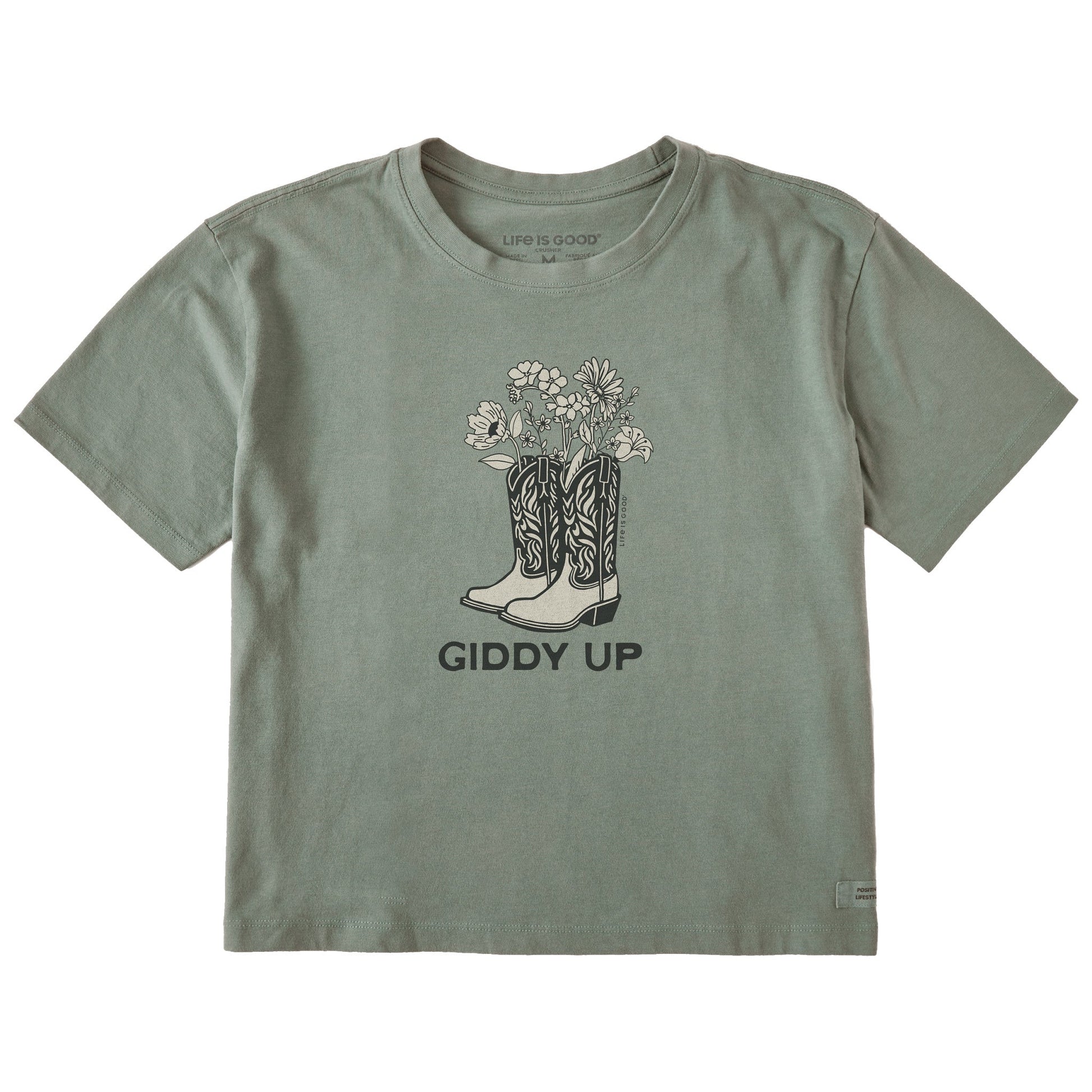 Women's Giddy Up Flower Boots Short Sleeve Crusher Boxy Tee