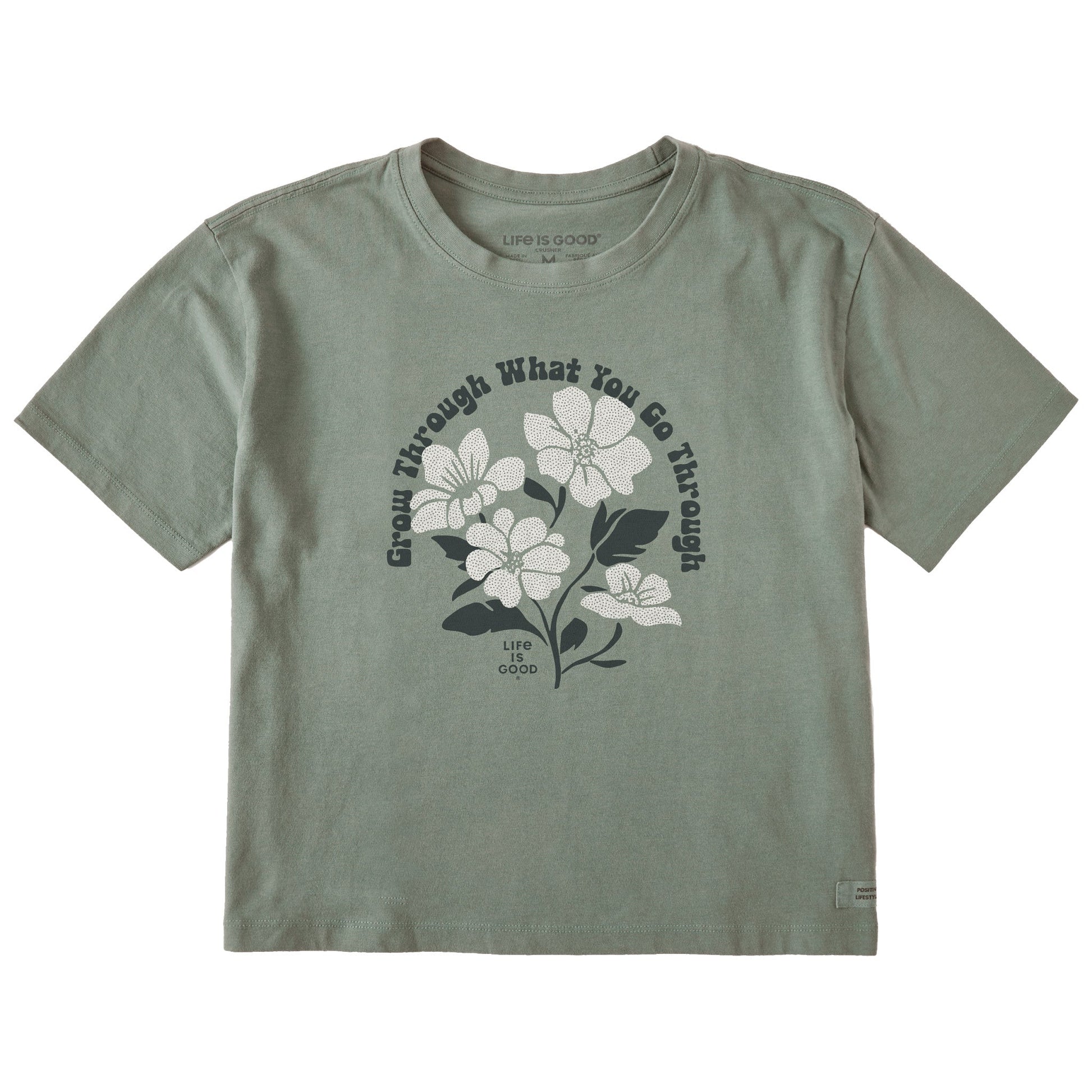 Women's Grow Through What You Go Through Flowers Short Sleeve Crusher Boxy Tee