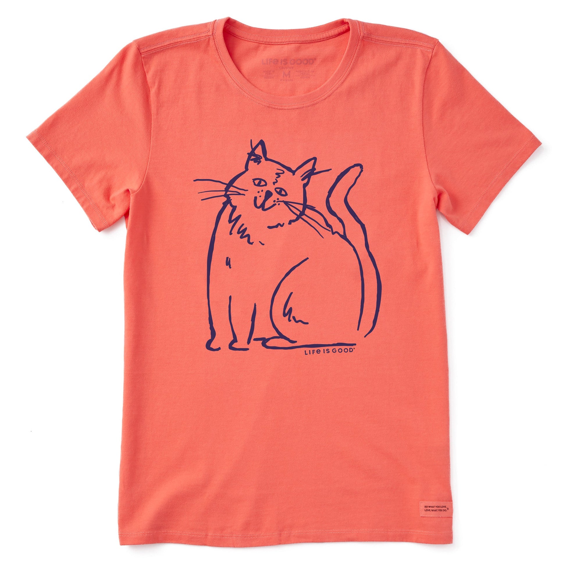 Women's Happy Cat Line Drawing Short Sleeve Crusher Tee