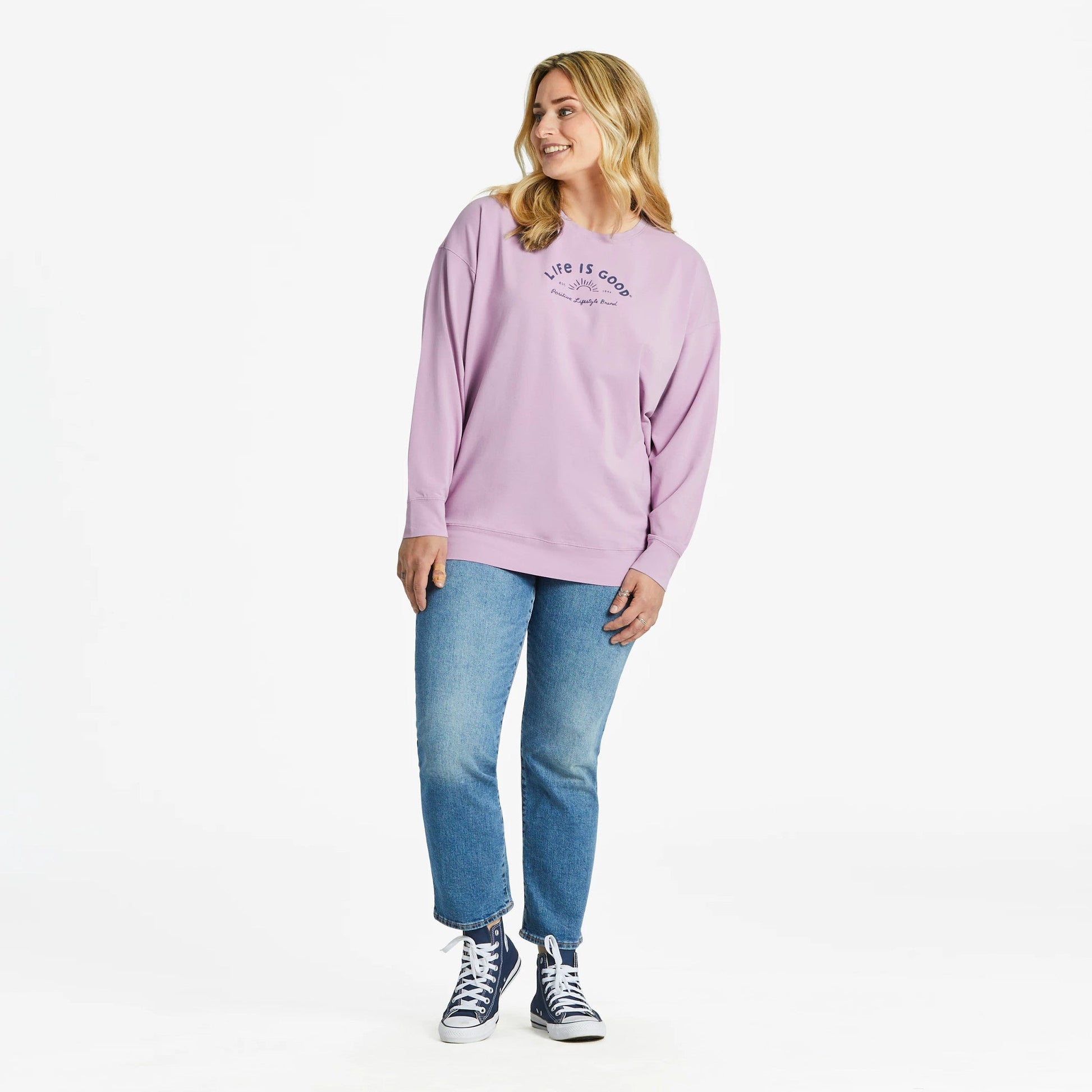Women's Life is Good Positive Lifestyle Brand Crusher-FLEX Oversized Crew