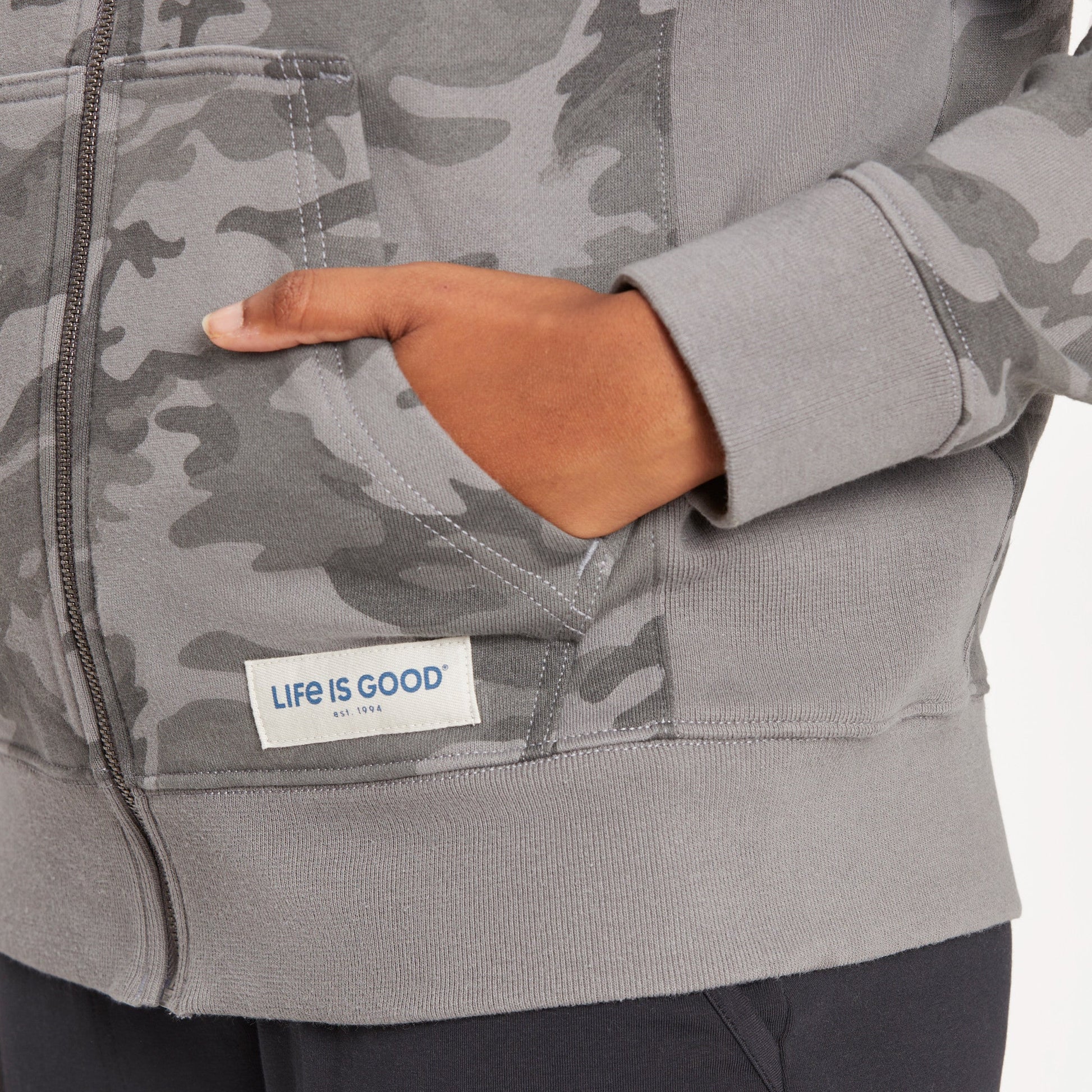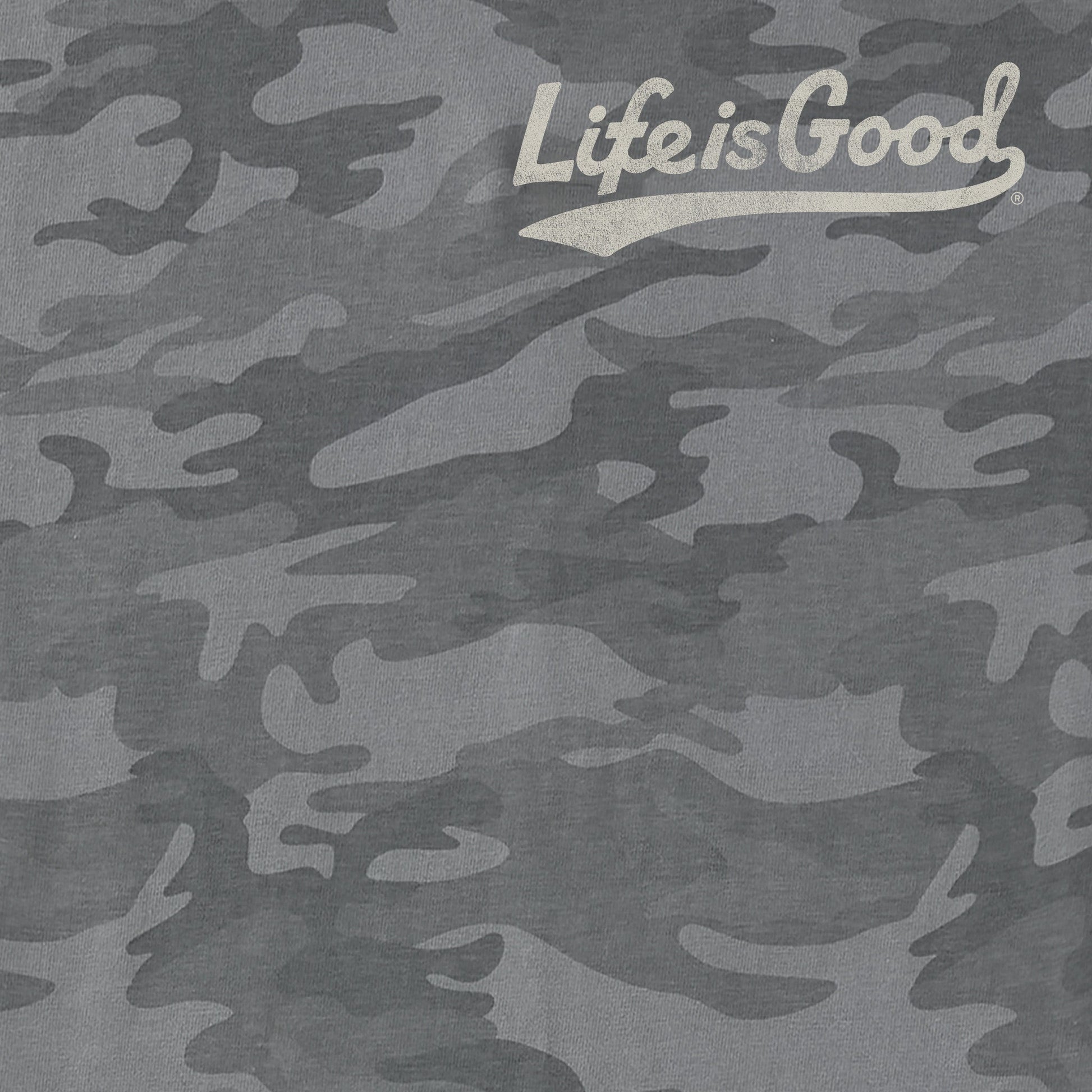 - Life is Good® twill patch sewn at lower pocket.