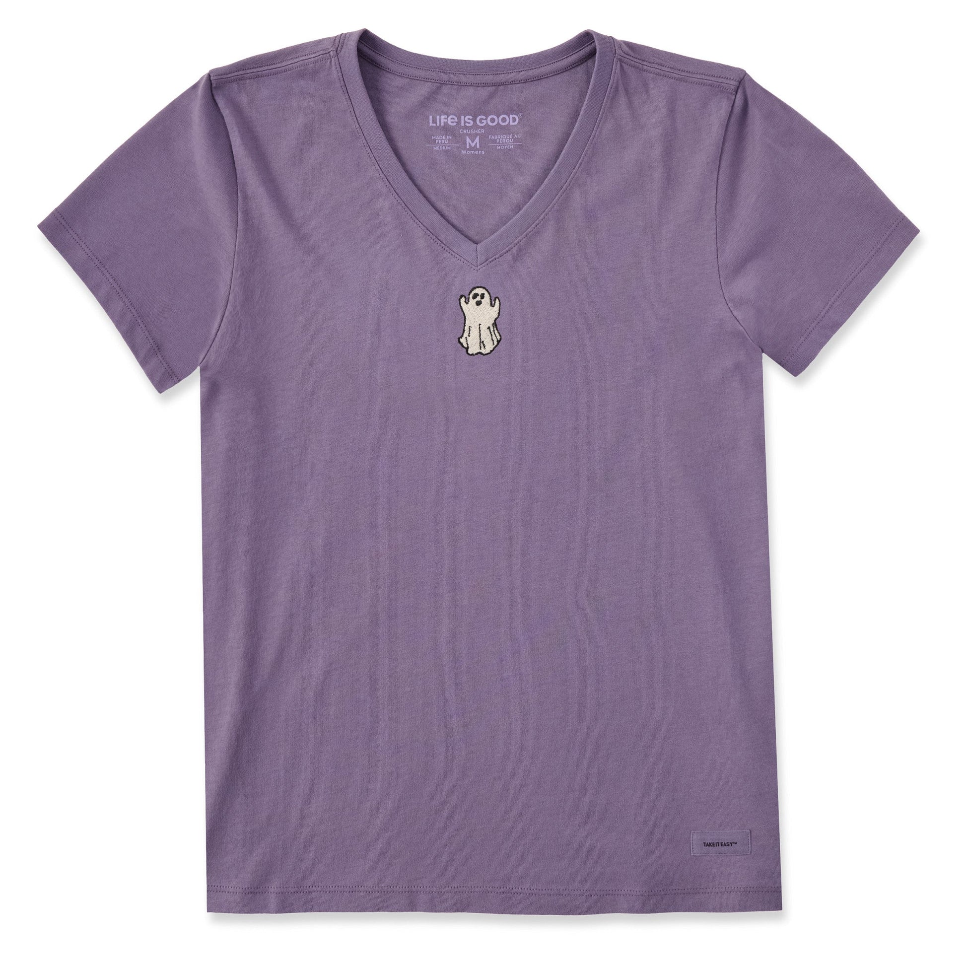 Women's Embroidered Lil Ghost Short Sleeve Crusher Vee