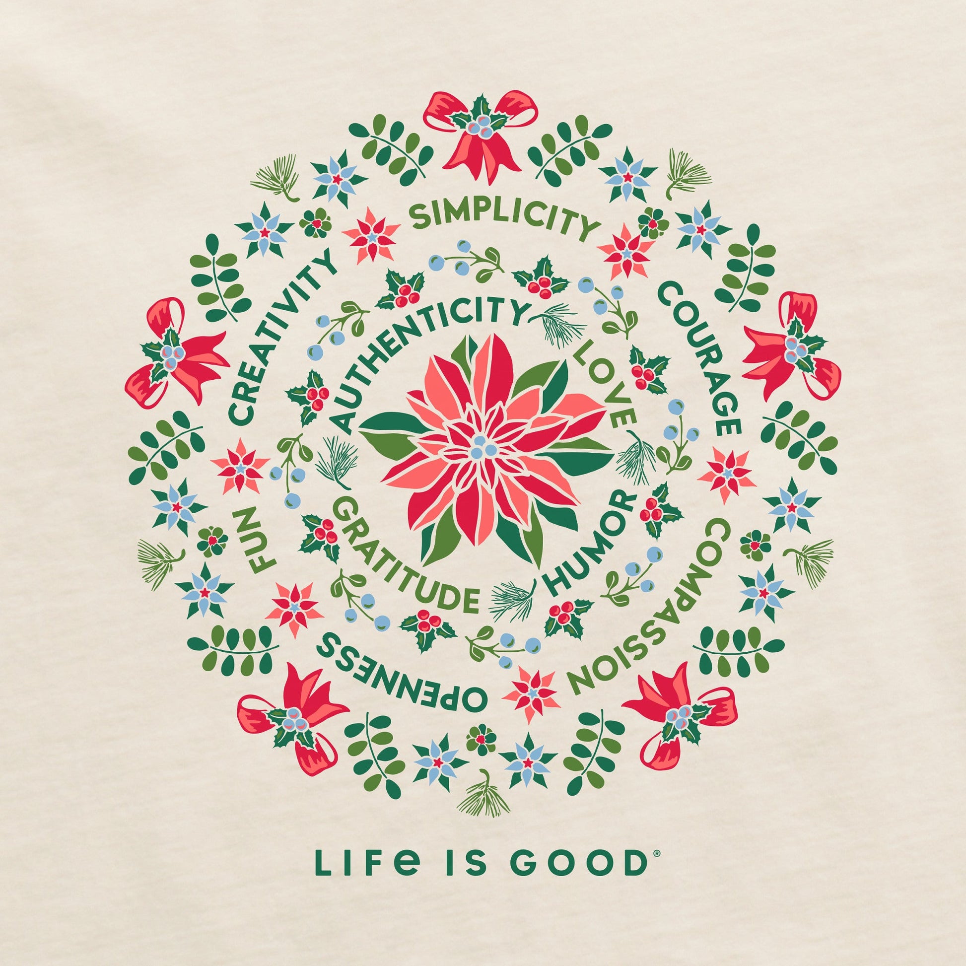 Women's Poinsettia Mandala Long Sleeve Crusher Tee