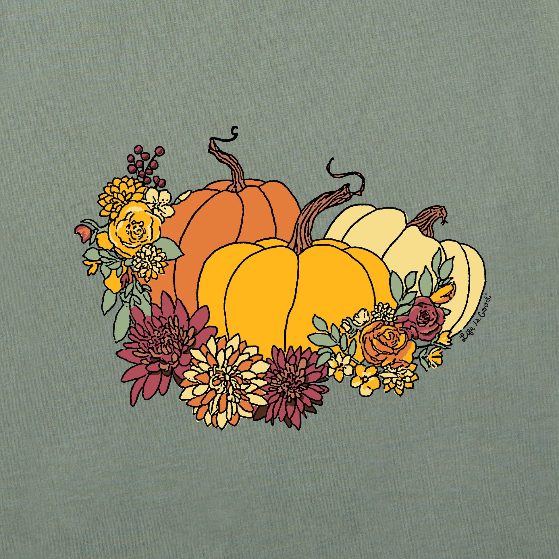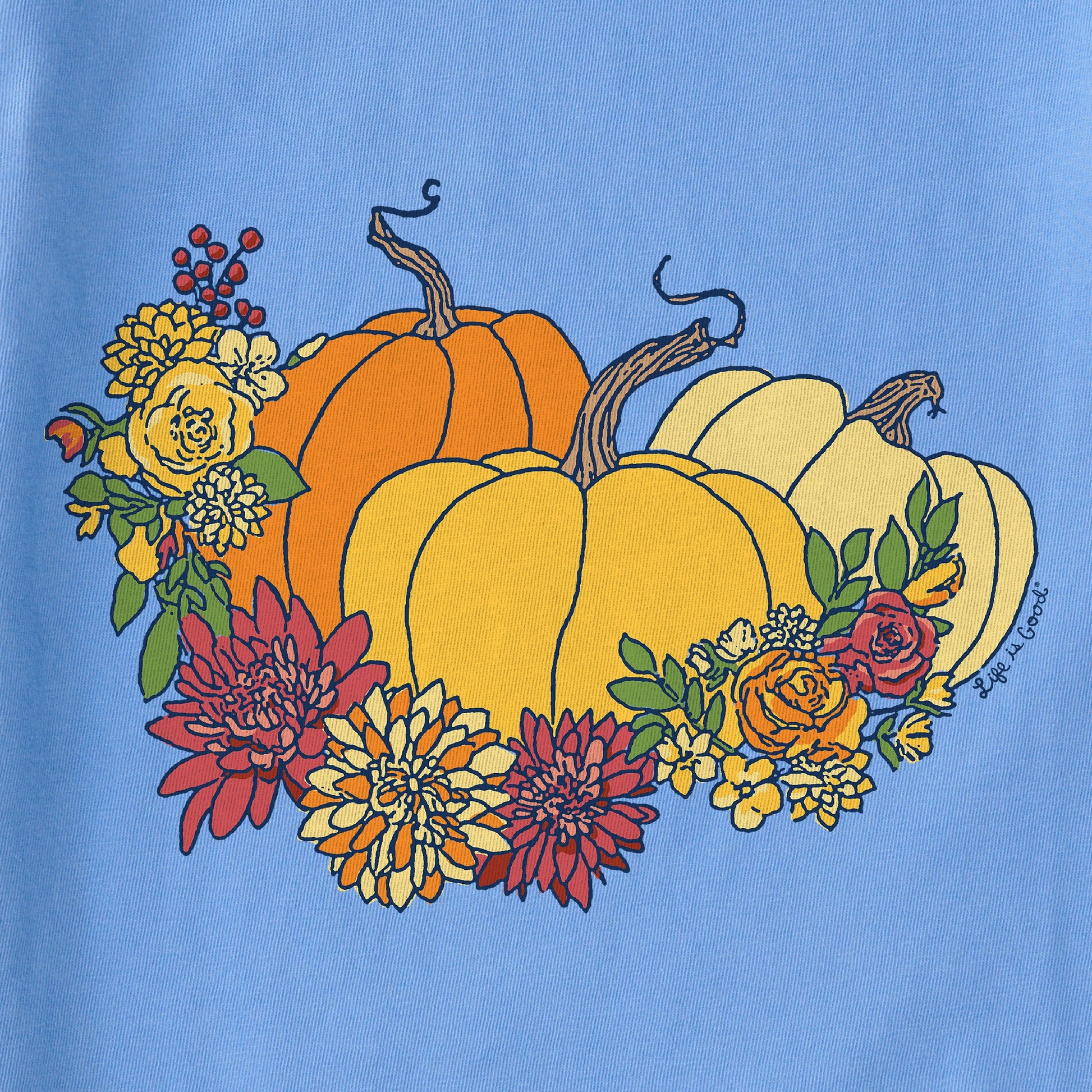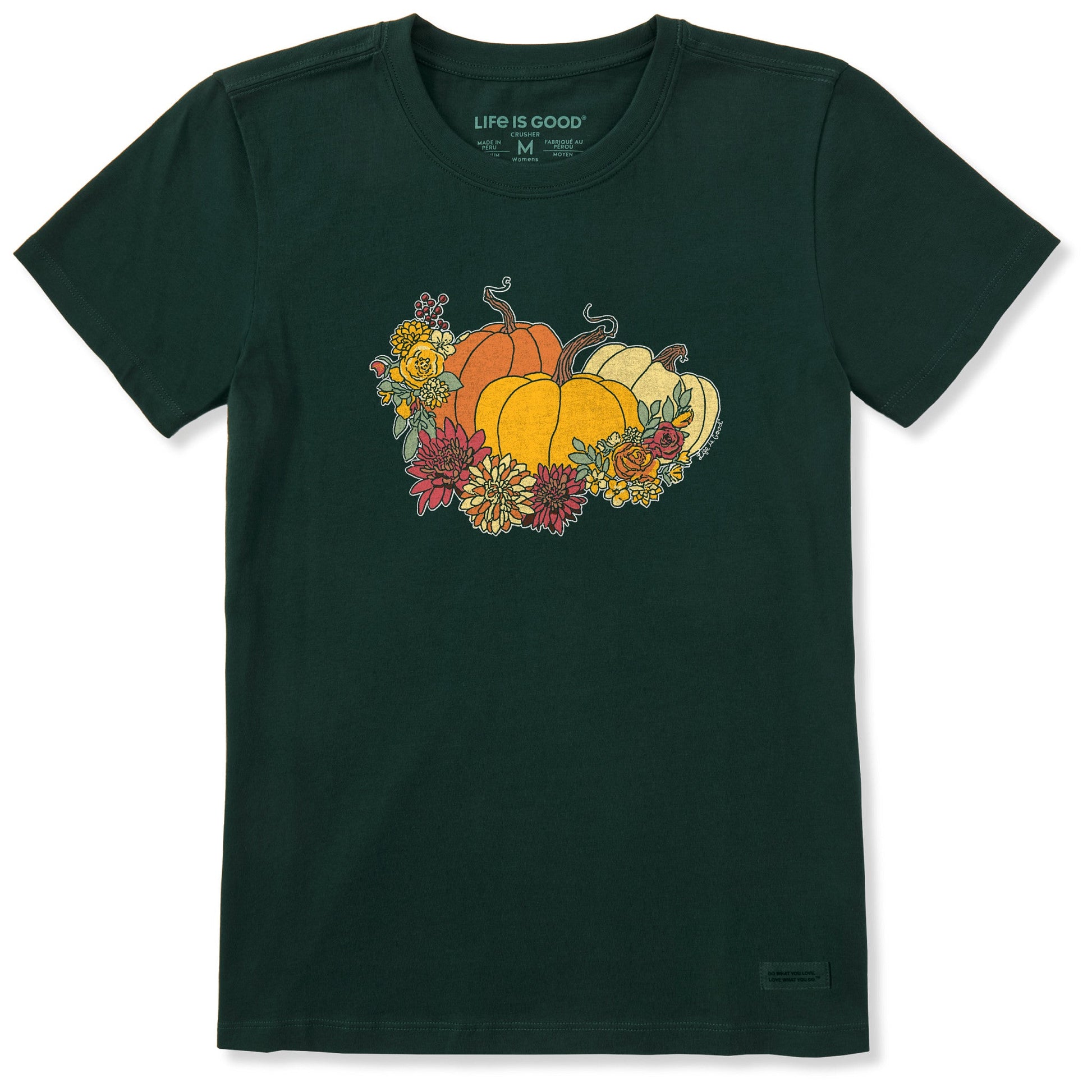 Women's Pumpkin and Flowers Short Sleeve Crusher Tee