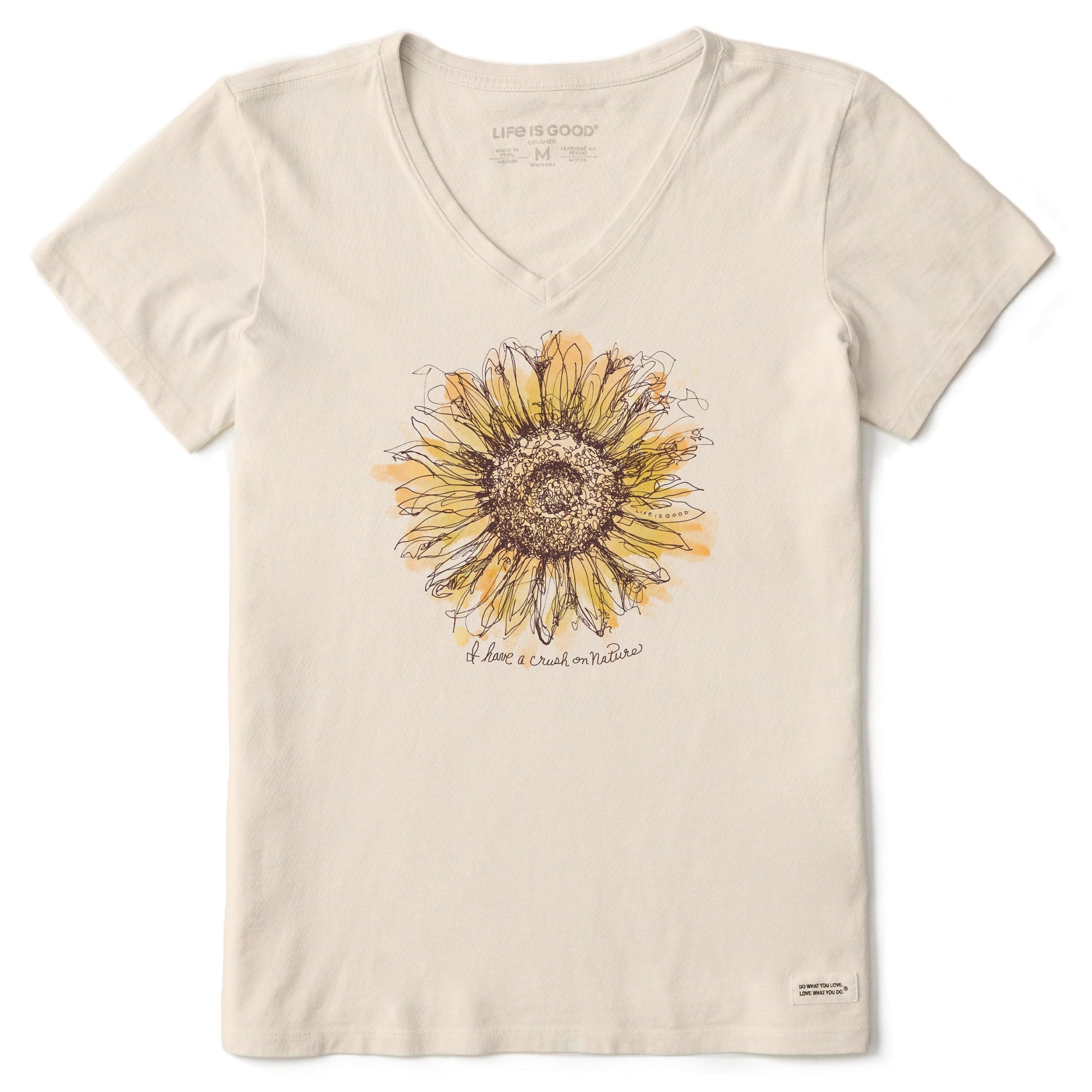 Women's Scribbled Sunflower Short Sleeve Vee
