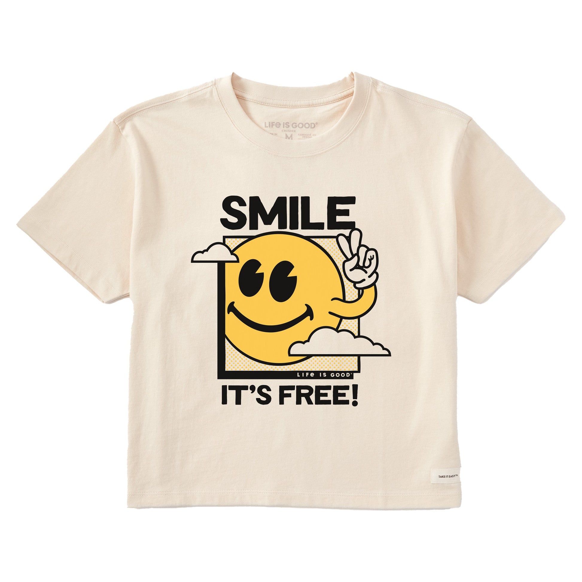 Women's Smile It's Free! Clouds Short Sleeve Crusher Boxy Tee