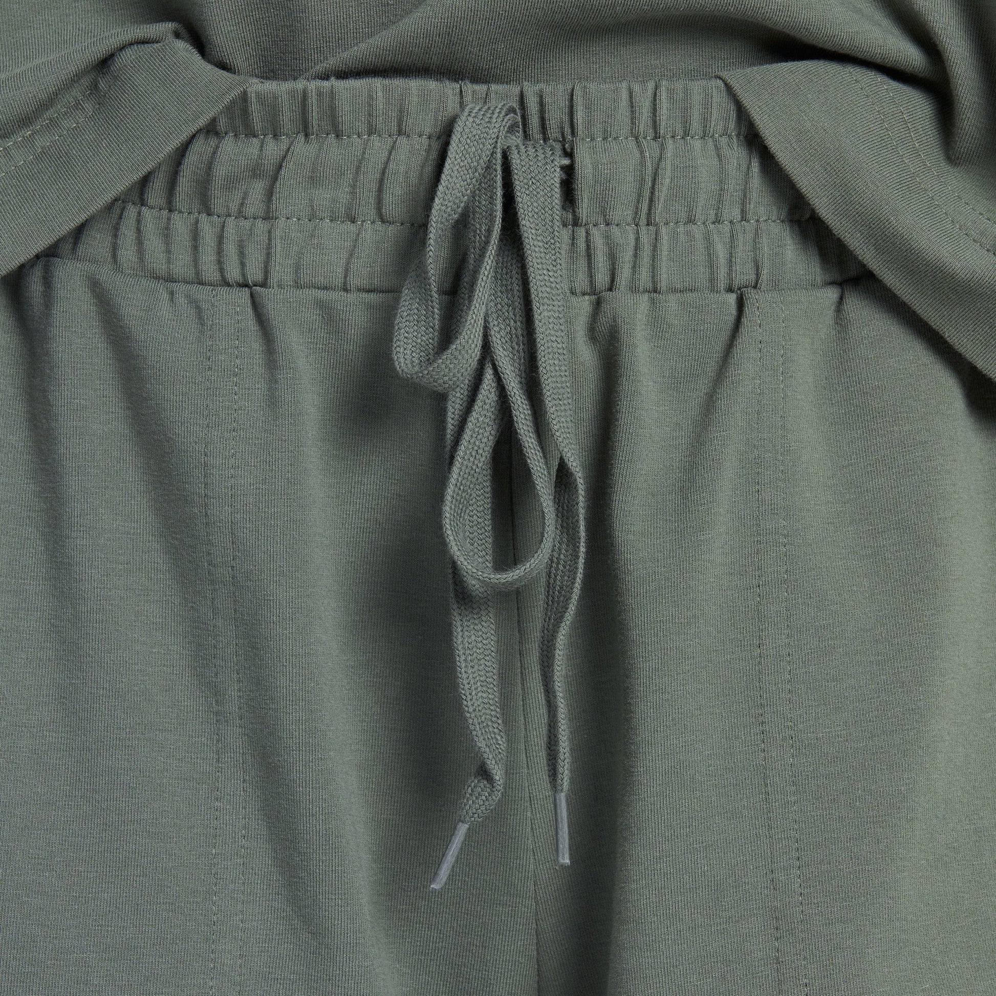 - Elastic encased self waistband with drawcord.