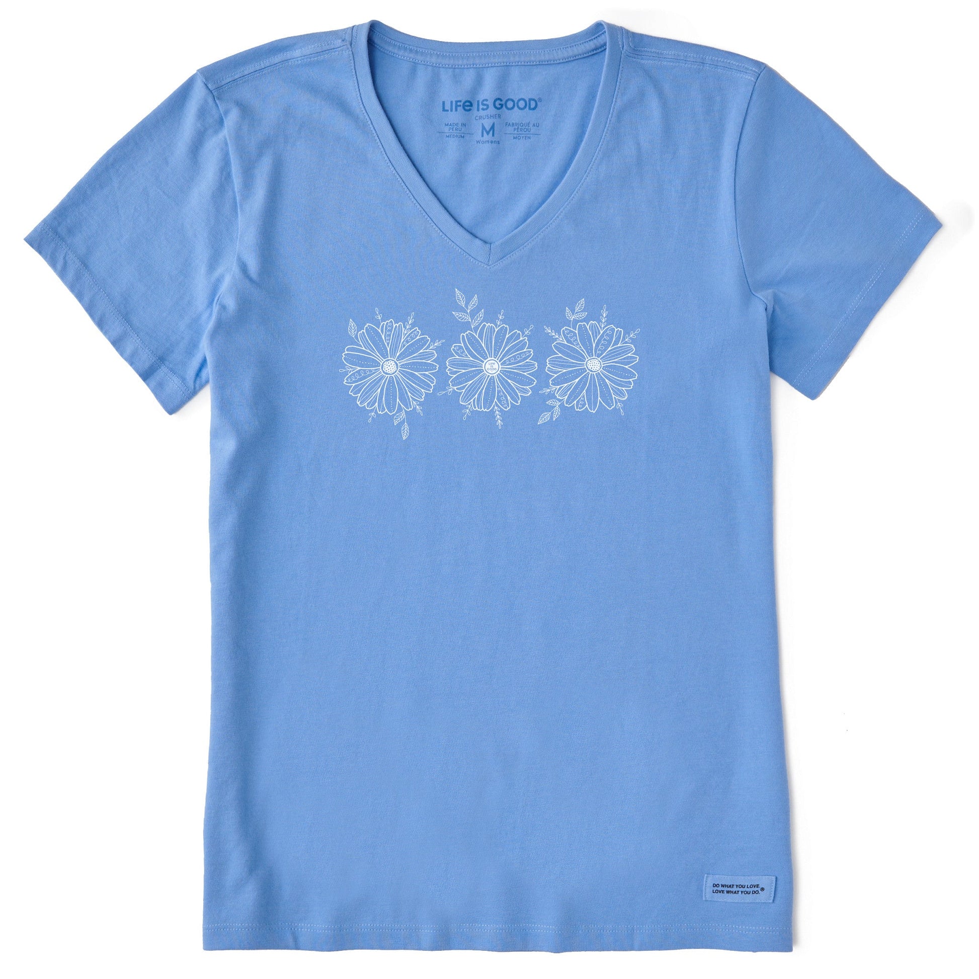 Women's Three Daisies Sketch Short Sleeve Vee