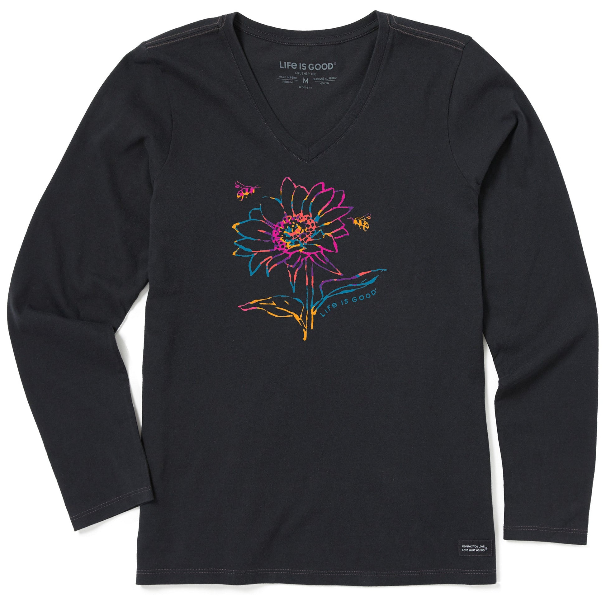Women's Tie Dye Sunflower Bees Long Sleeve Crusher Vee