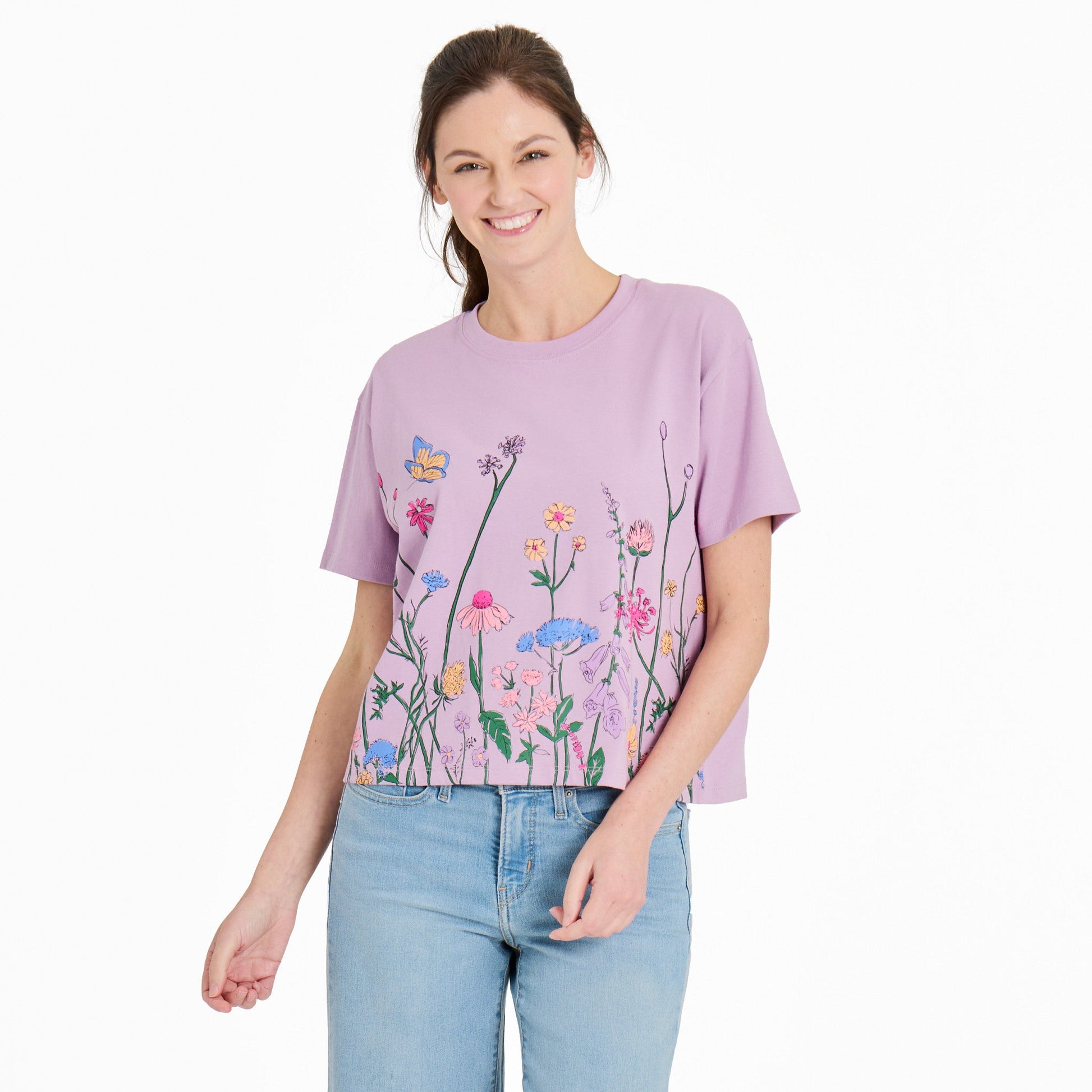 Women's Wildflower Garden Short Sleeve Crusher Boxy Tee